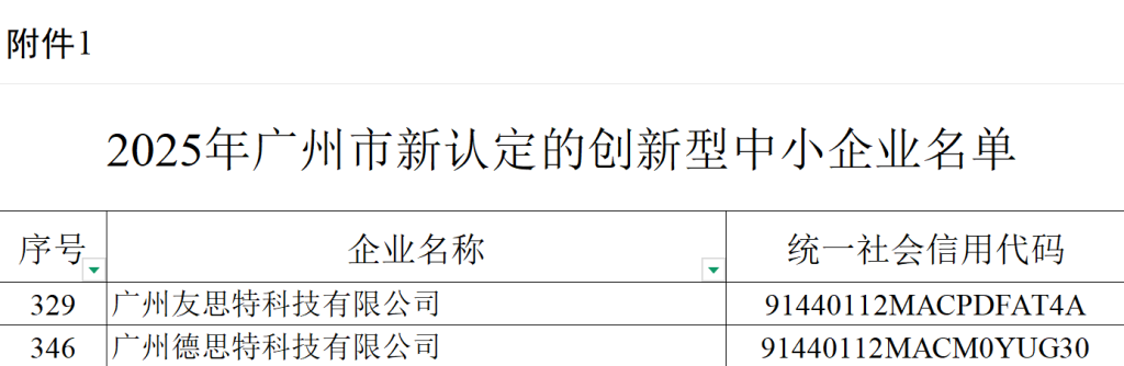 廣州市工業和信息化局關于公布2025年廣州市創新型中小企業名單的通知