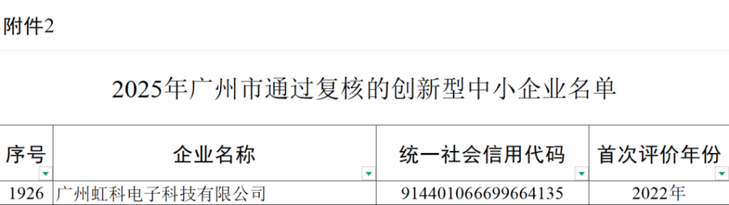 兩新晉一復核!虹科集團三家企業入選廣州市2025年創新型中小企業名單,再獲權威認可?!