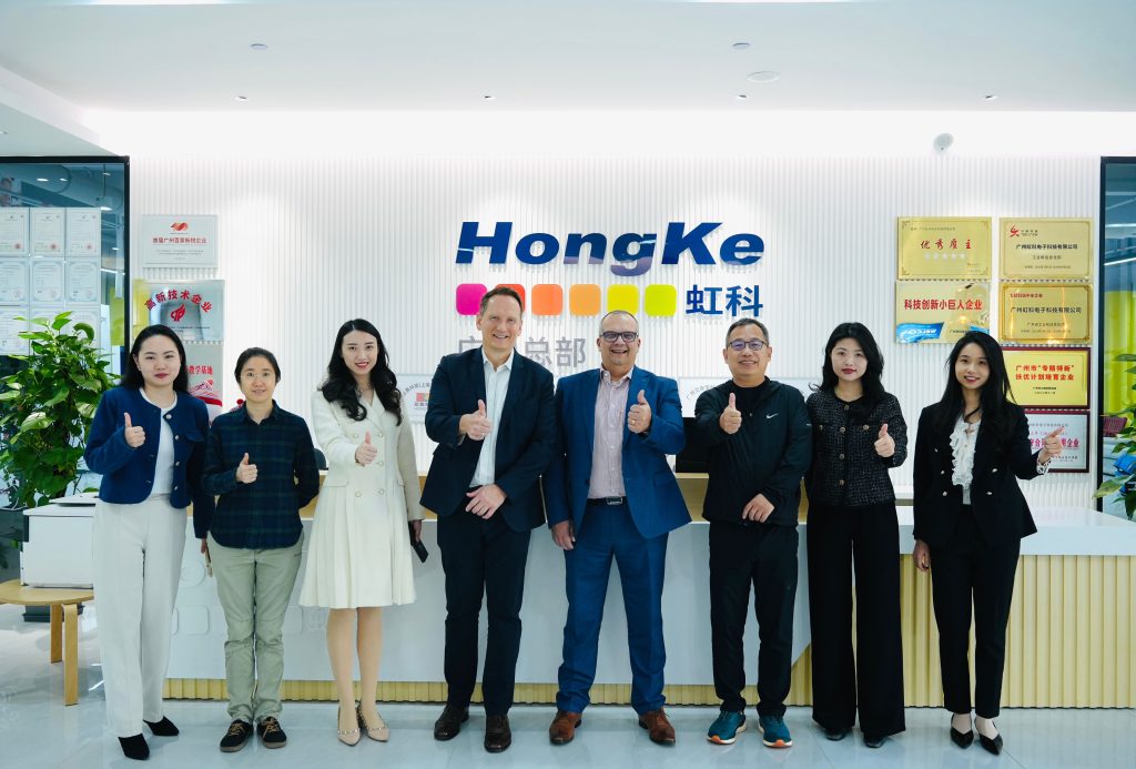 虹科創始人楚杰先生、總經理陳秋苑女士率團隊熱情接待,三方通過參訪黃埔規劃展廳、虹科總部技術展示及座談交流,共探產業升級與創新合作機遇。